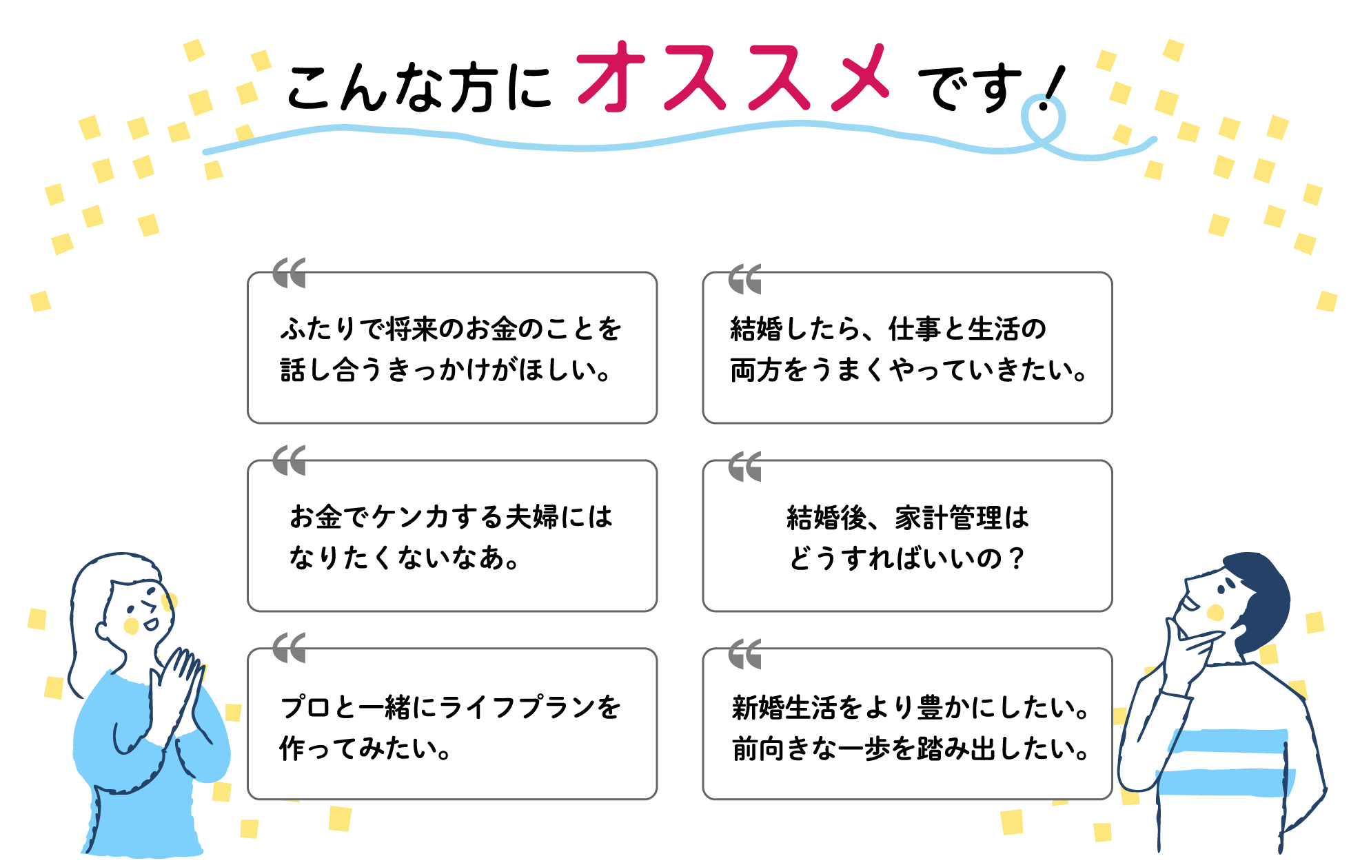これからのライフプランやお金のことを、具体的に描きながら学べるセミナーを開催します。 貯蓄の考え方や将来必要となる費用の見通しなど、知っているかどうかで大きな差がつく重要ポイントを、 テレビや雑誌でも活躍しているマネーの専門家がわかりやすく解説します。 未来の安心とゆとりにつながる一歩を、このセミナーで踏み出してみませんか。